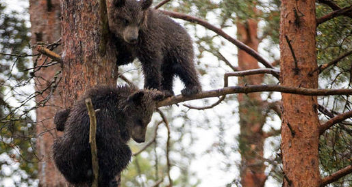 This mother bear can hardly bear to watch as her cubs climb higher and higher up a tree! The photo shows the cubs all looking down to see how far their brothers and sisters have got. They know that their mother can’t stop them as they head higher up. Sitting at the bottom, mother even holds her head in her paws because she can’t bear to watch them! Photographer Ville Paakkonen, 20, from Finland was out bear watching when he found the cubs playing around. Finland’s pine forests are home to an estimated 1,500 European brown bears. Sightings can be almost guaranteed.